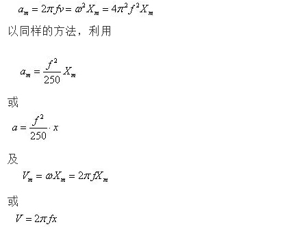 因此在根據上式確定了加速度區域的激振力和已知試驗加速度幅值a后,用下式a=2πfv即可計算出此試驗負載下的加速度區和速度區的交越點,然后繼續用下式V=a/2πf計算出該交越點以下速度區內頻率點各對應的速度幅值的大小。當計算值小于初步選定的振動臺的最大速度幅值時,試驗可行;選型得以確認,反之則應重新選型。